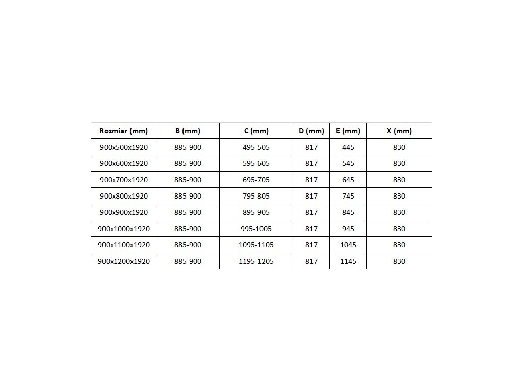 Rozměr: 90x80 cm (dveře 90 cm, stěna 80 cm)