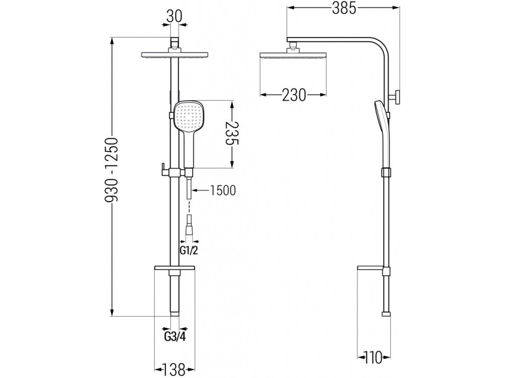 Velikost dešťové sprchy: 230x230 mm