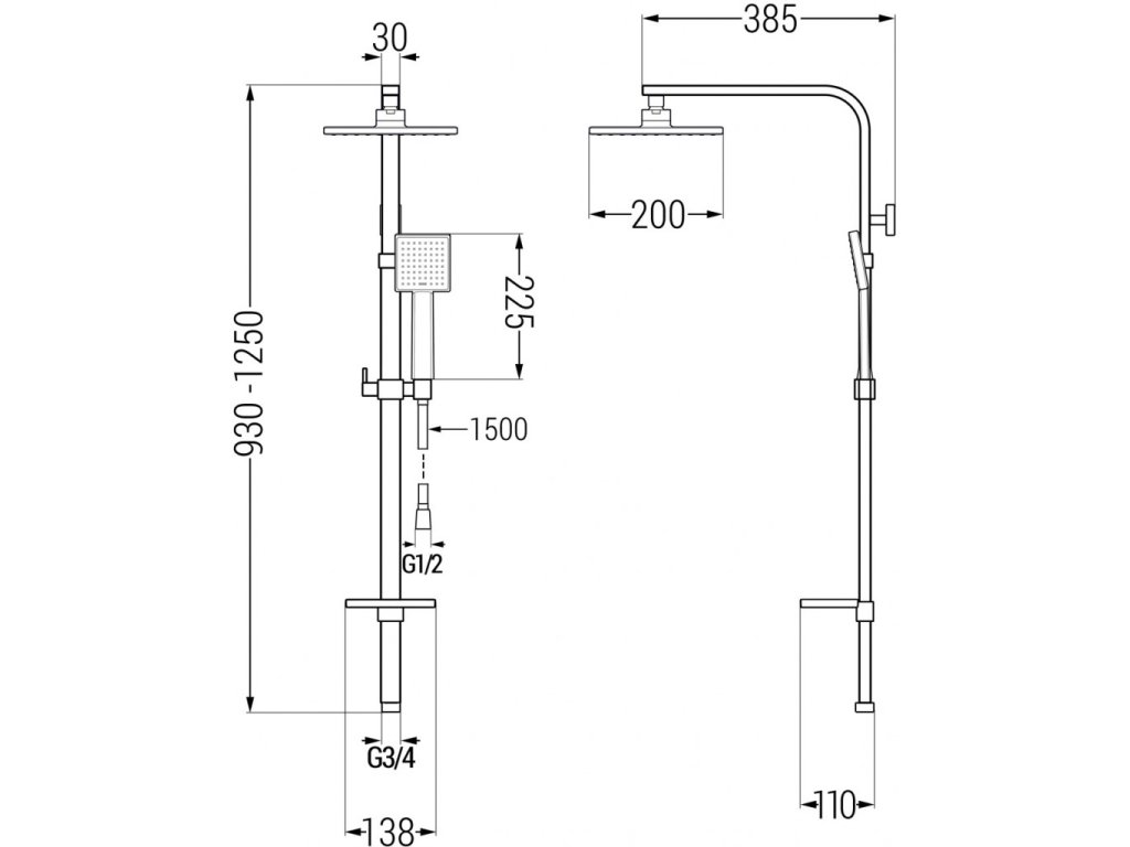 Velikost dešťové sprchy: 200x200 mm