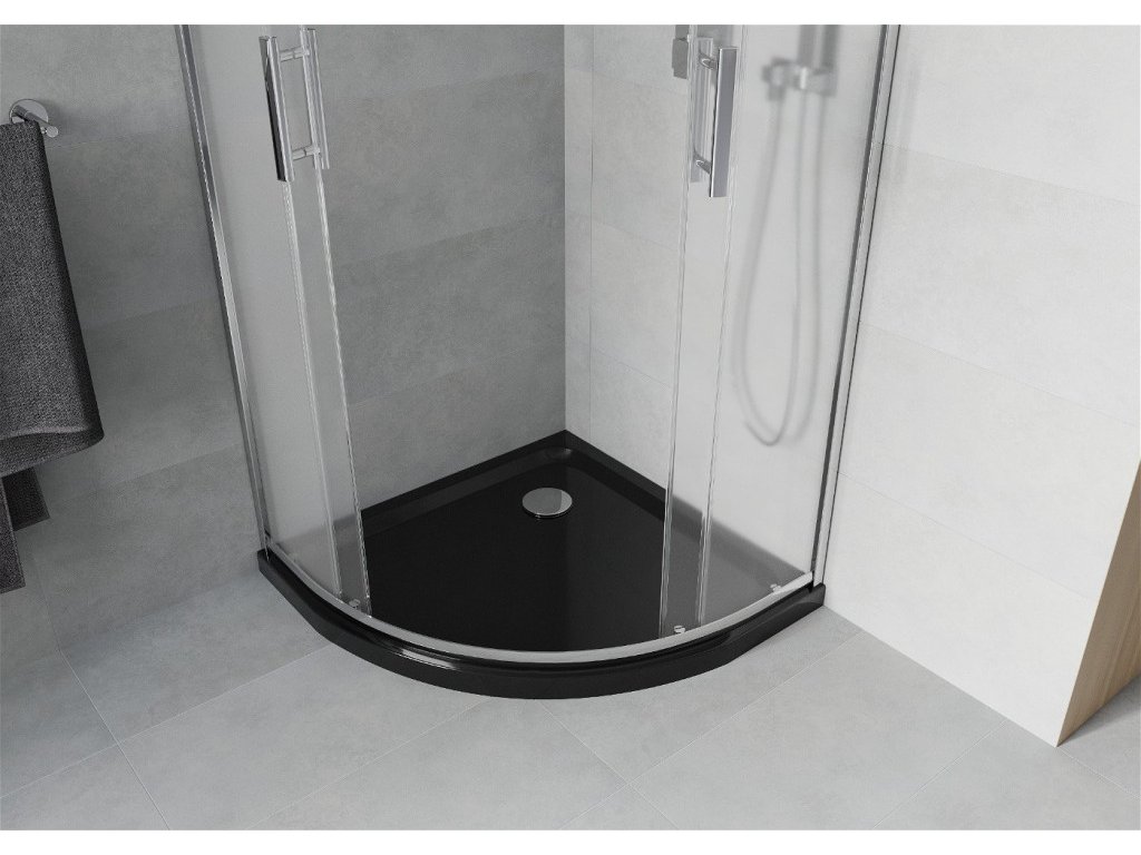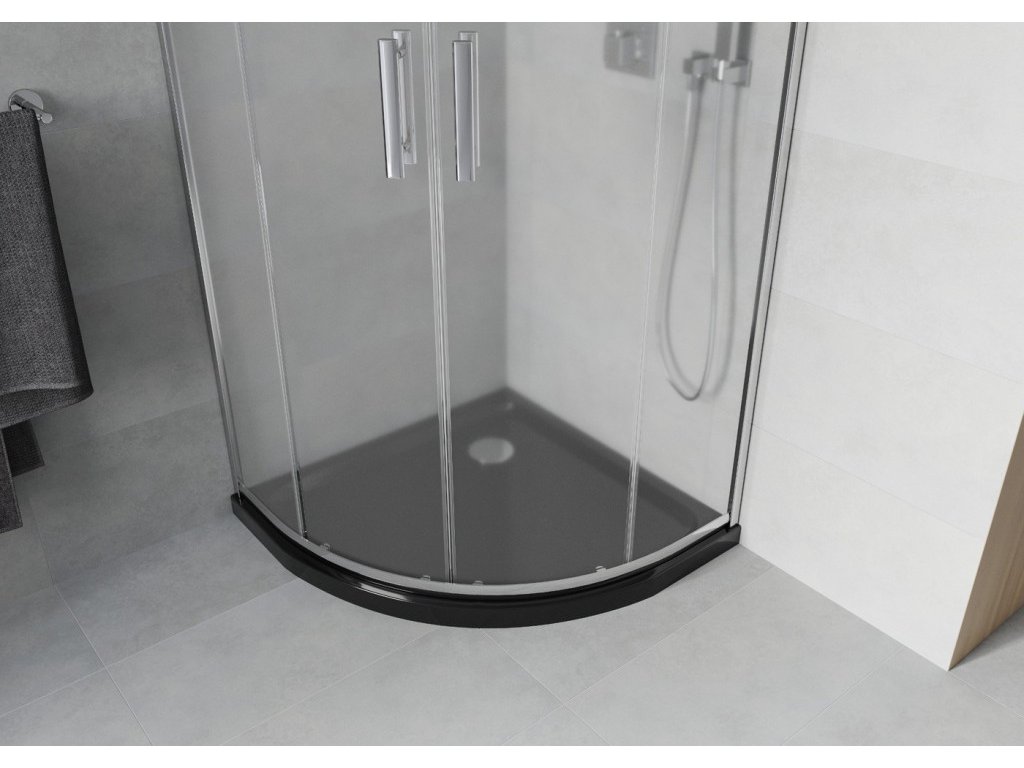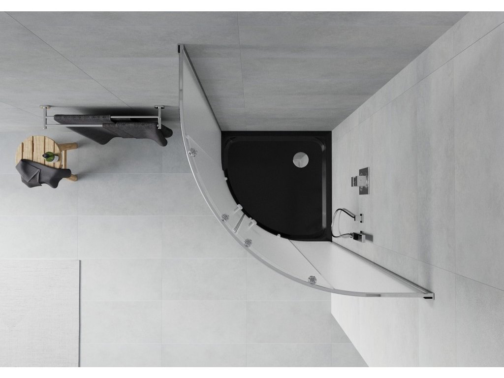 MEXEN/S - Rio čtvrtkruhový sprchový kout 80 x 80, mráz, chrom + vanička se sifonem Flat, černý 863-080-080-01-30-4170