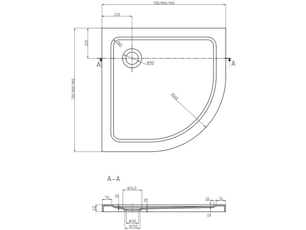 Technické údaje sprchové vaničky:
