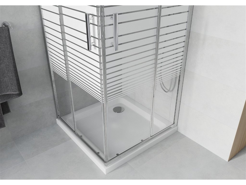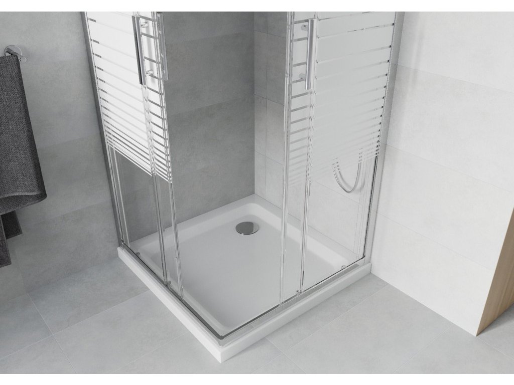 MEXEN/S - Rio Sprchový kout čtvercový 90x90, transparent/dekor, chrom + vanička se sifonem 860-090-090-01-20-4010