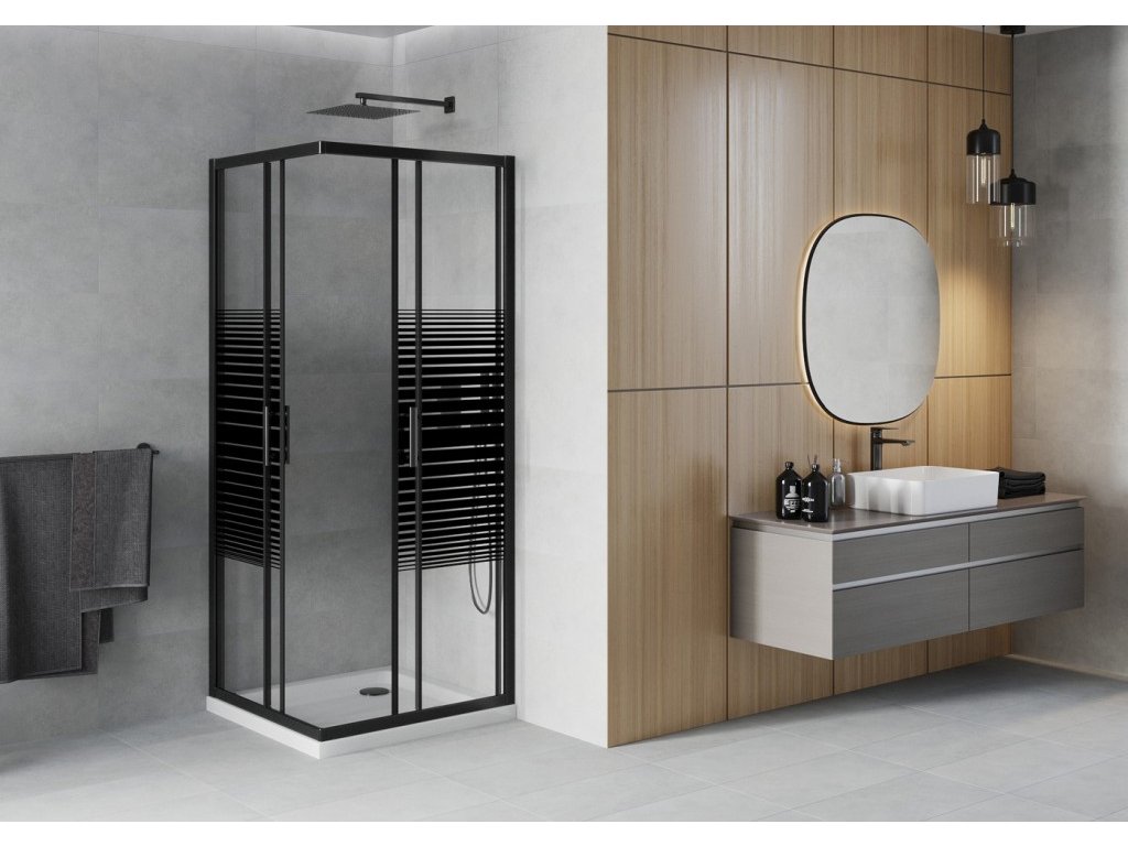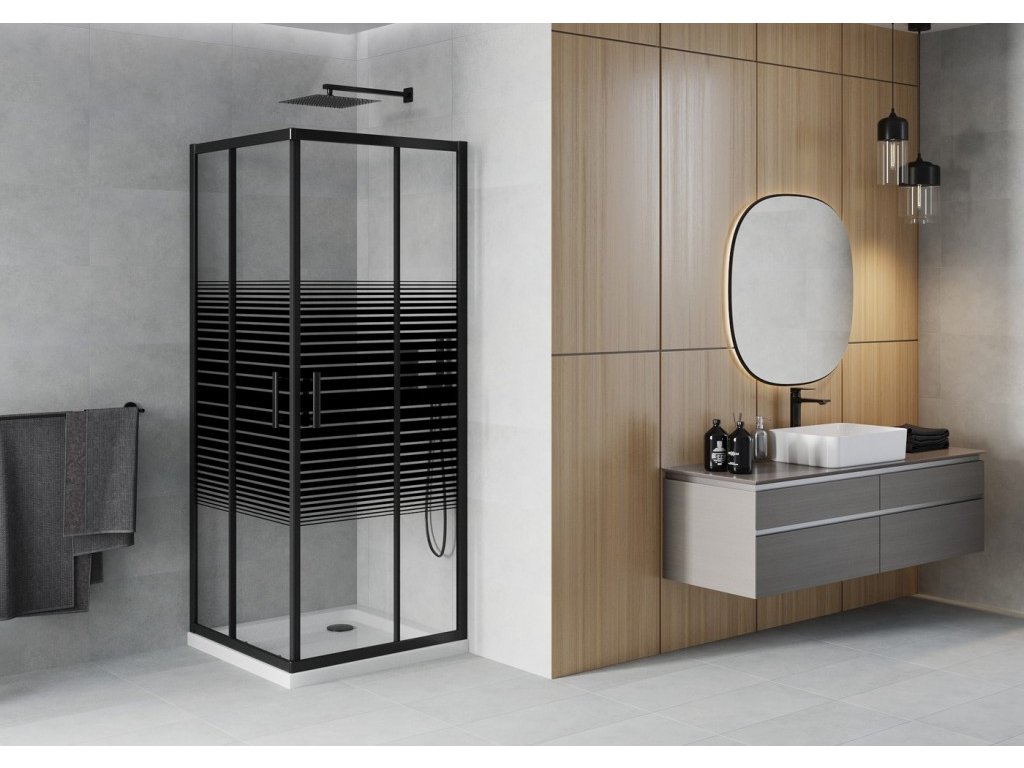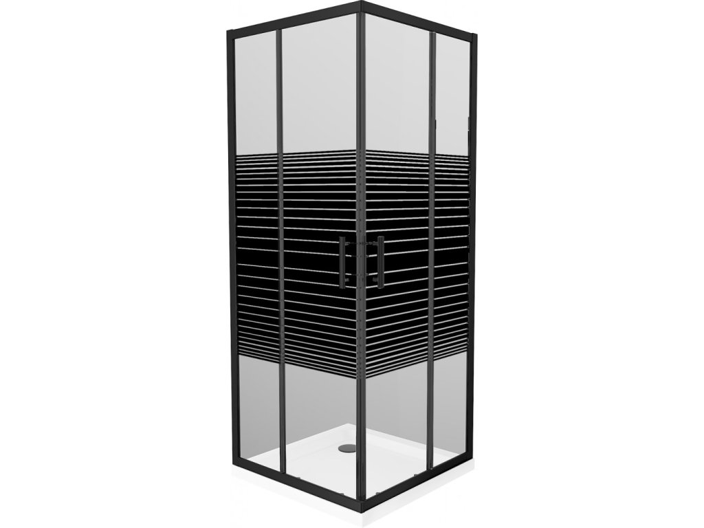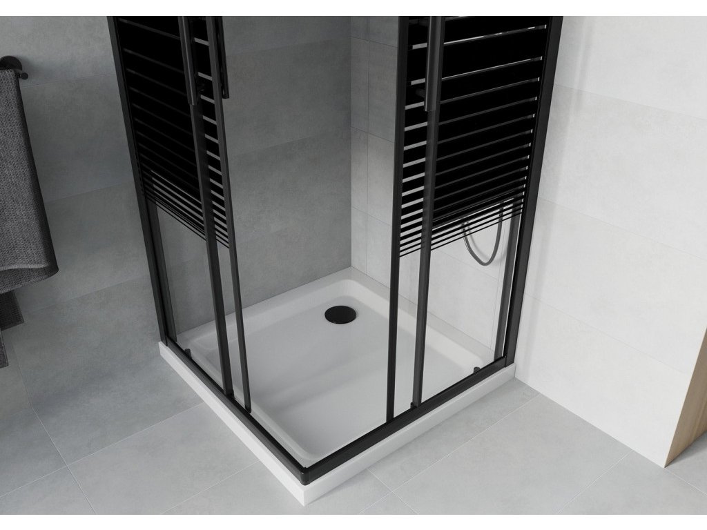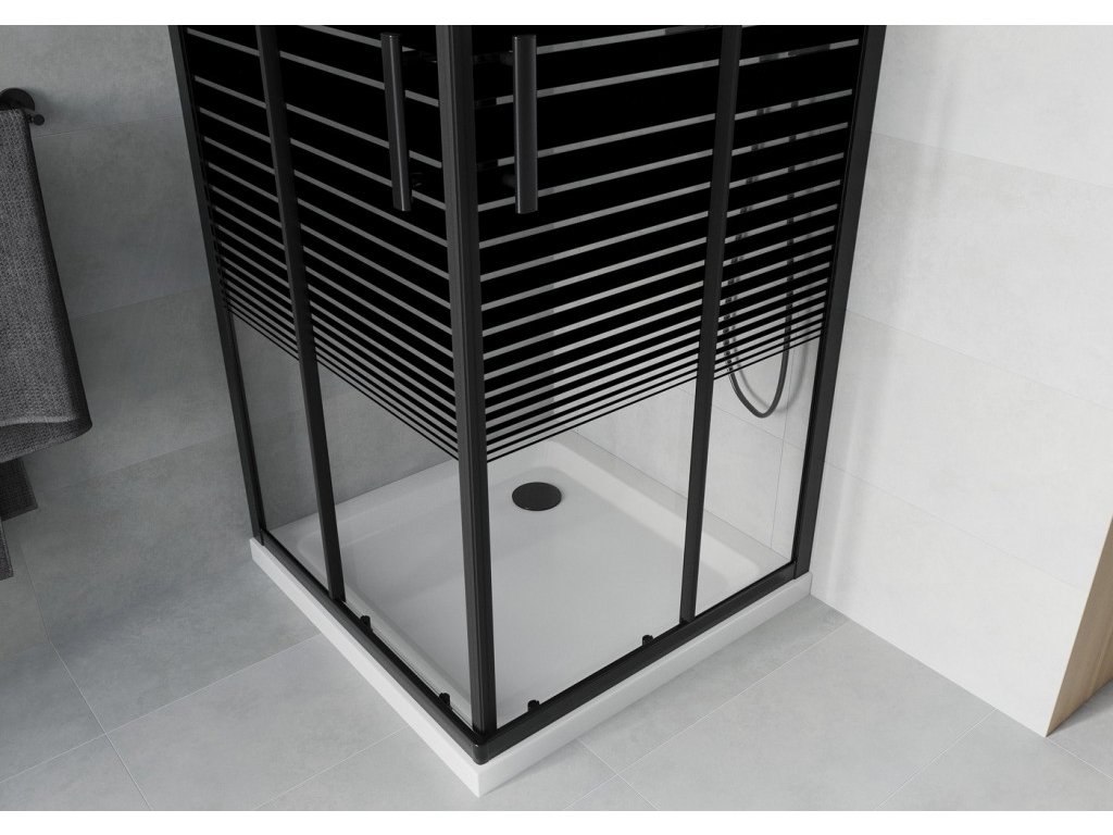 MEXEN/S - Rio sprchový kout čtverec 80x80, pruhy, černá + bílá vanička se sifonem 860-080-080-70-20-4010B