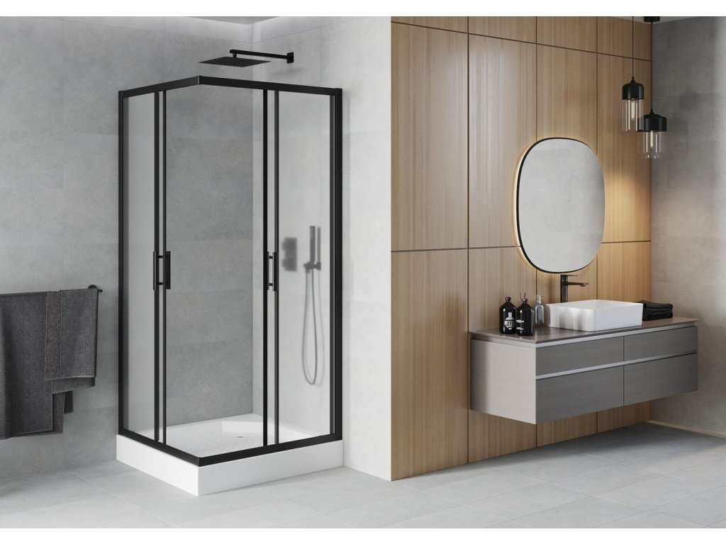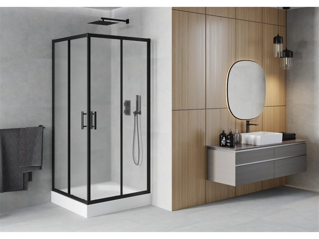 Luxusní celoskleněný čtvercový kout se vstupem přes roh opatřený jednotnými kovovými závěsy a nástěnnou vymezovací lištou. Sprchová zástěna VIVA 195R čtverec je vyrobena z...