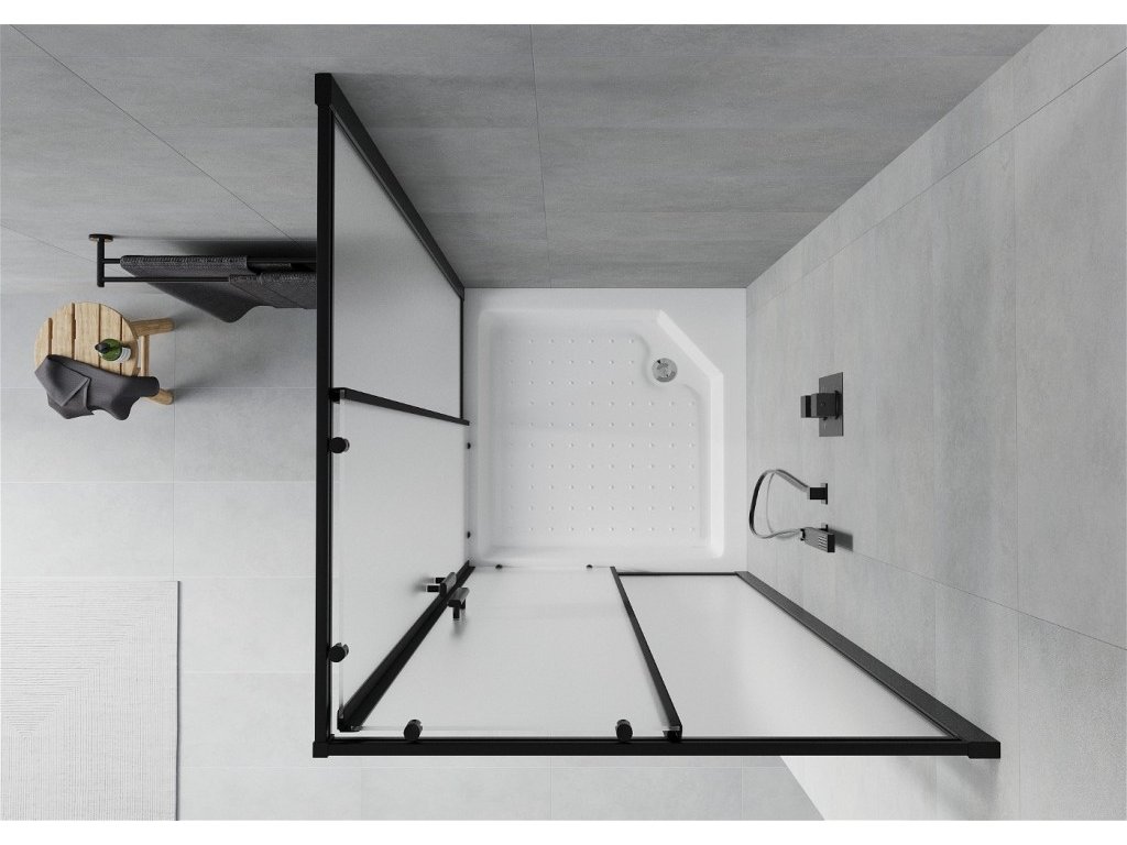 MEXEN/S - Rio sprchový kout čtverec 90 x 90, dekor, černý + vanička Rio včetně výpustě 860-090-090-70-30-4510