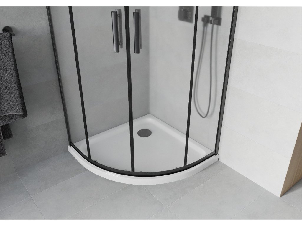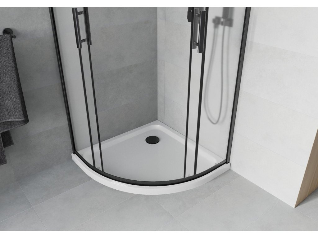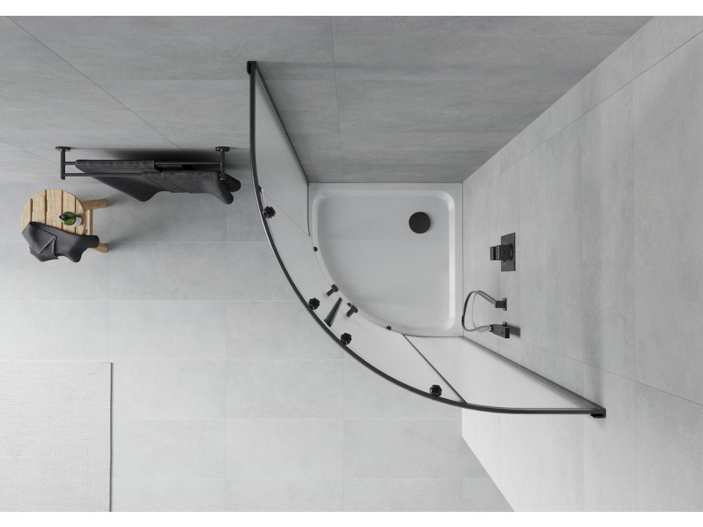 MEXEN/S - Rio sprchový kout čtvrtkruh 80x80, dekor, černá + bílá vanička se sifonem 863-080-080-70-30-4110B