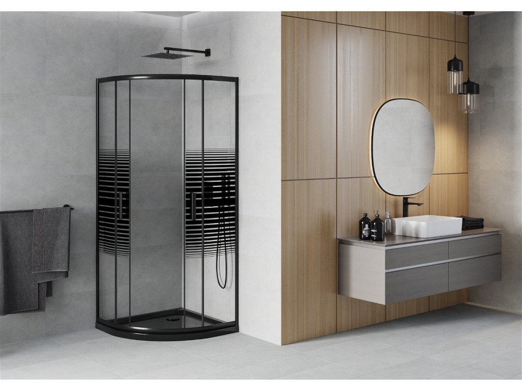 MEXEN/S - Rio sprchový kout čtvrtkruh 80x80, pruhy, černá + černá vanička se sifonem 863-080-080-70-20-4170B