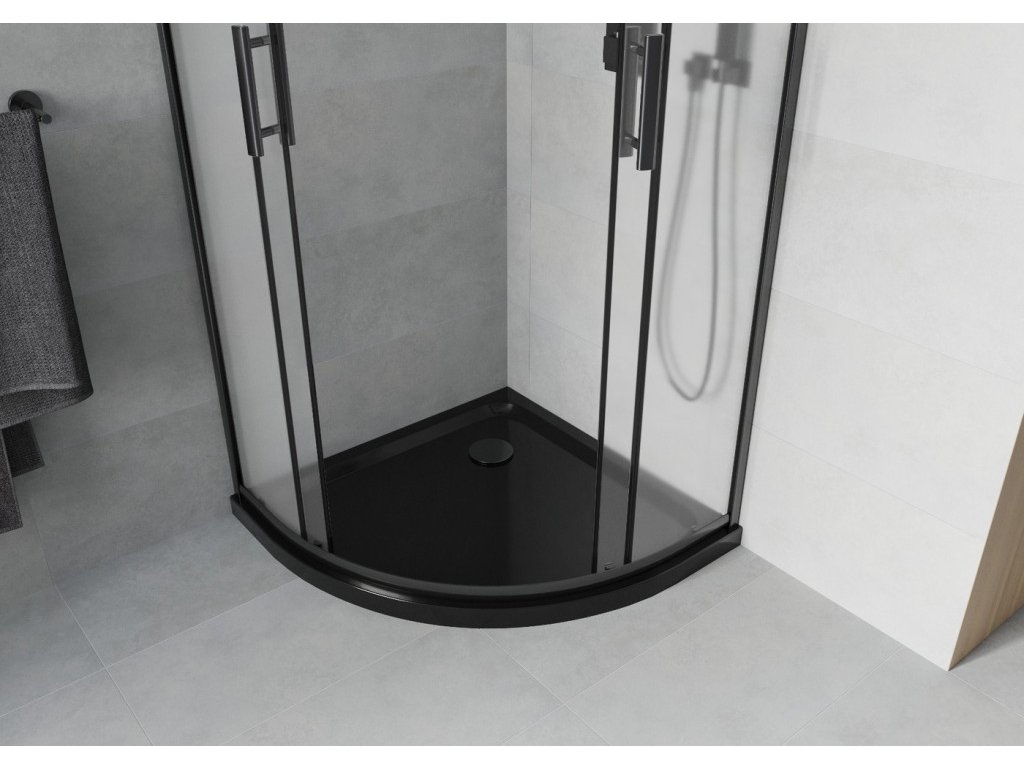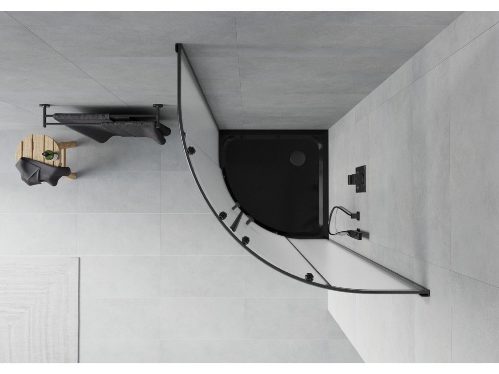 MEXEN/S - Rio sprchový kout čtvrtkruh 90x90, dekor, černá + černá vanička se sifonem 863-090-090-70-30-4170B