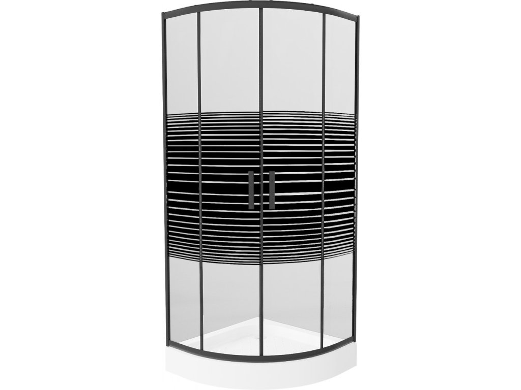 MEXEN/S - Rio sprchový kout čtvrtkruh 90x90, pruhy, černá + bílá vanička se sifonem 863-090-090-70-20-4710