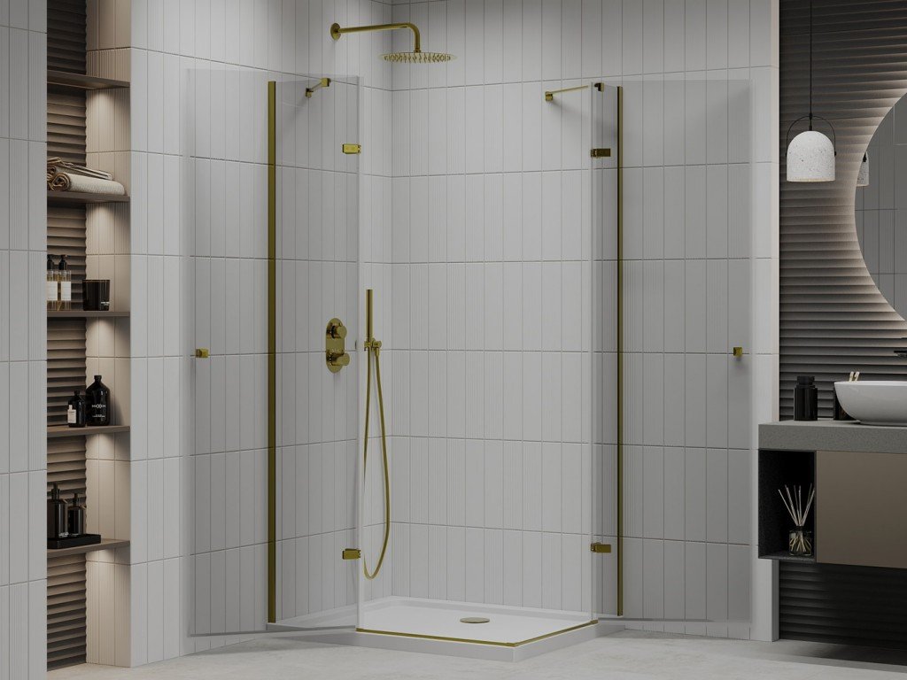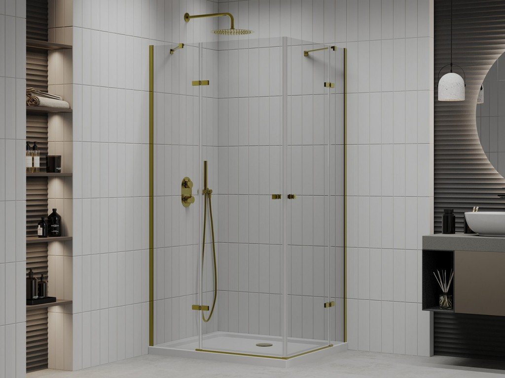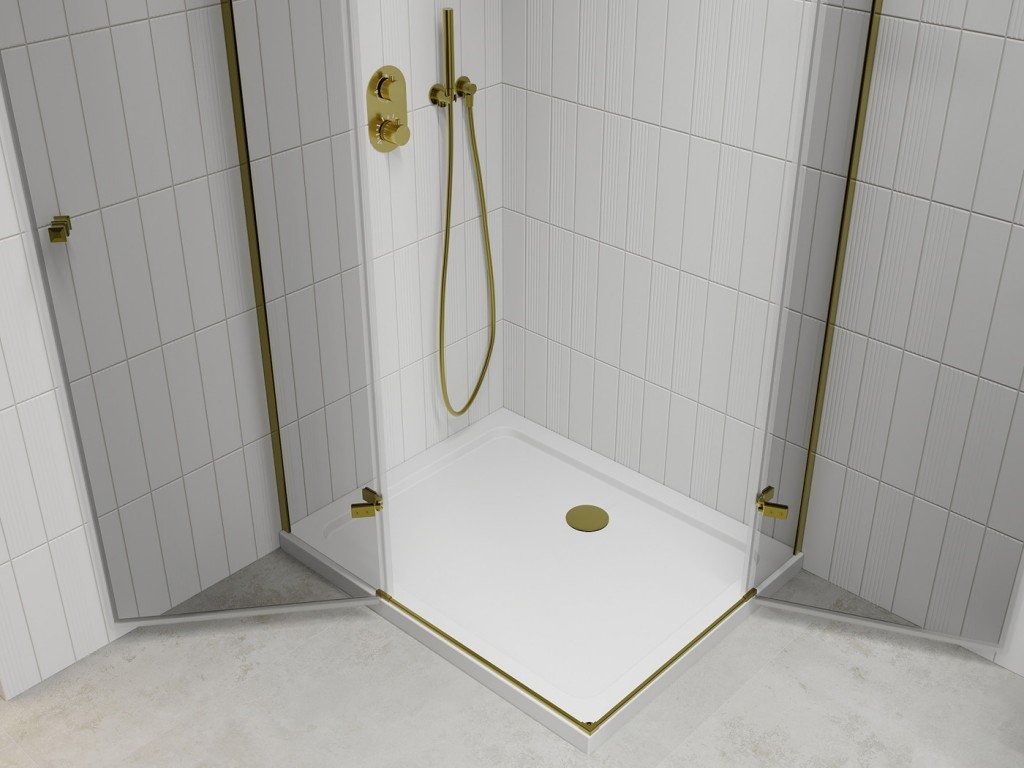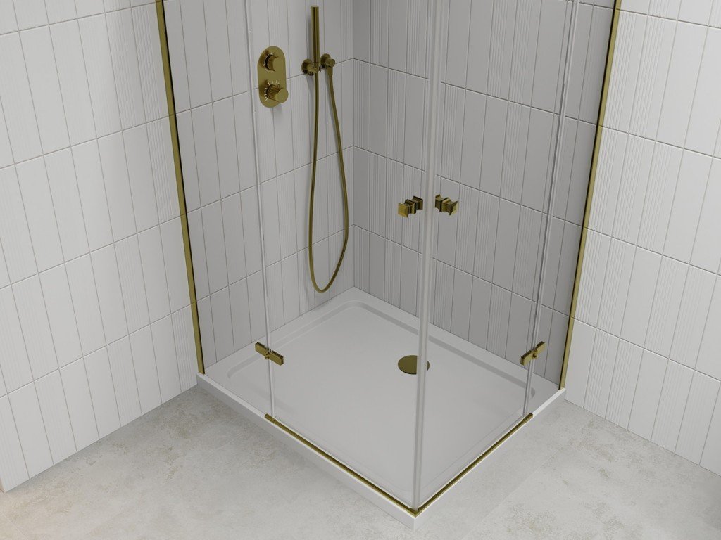 MEXEN/S - Roma Duo sprchový kout 90x80, transparent, zlatá +vanička se sifonem 854-090-080-50-02-4010G