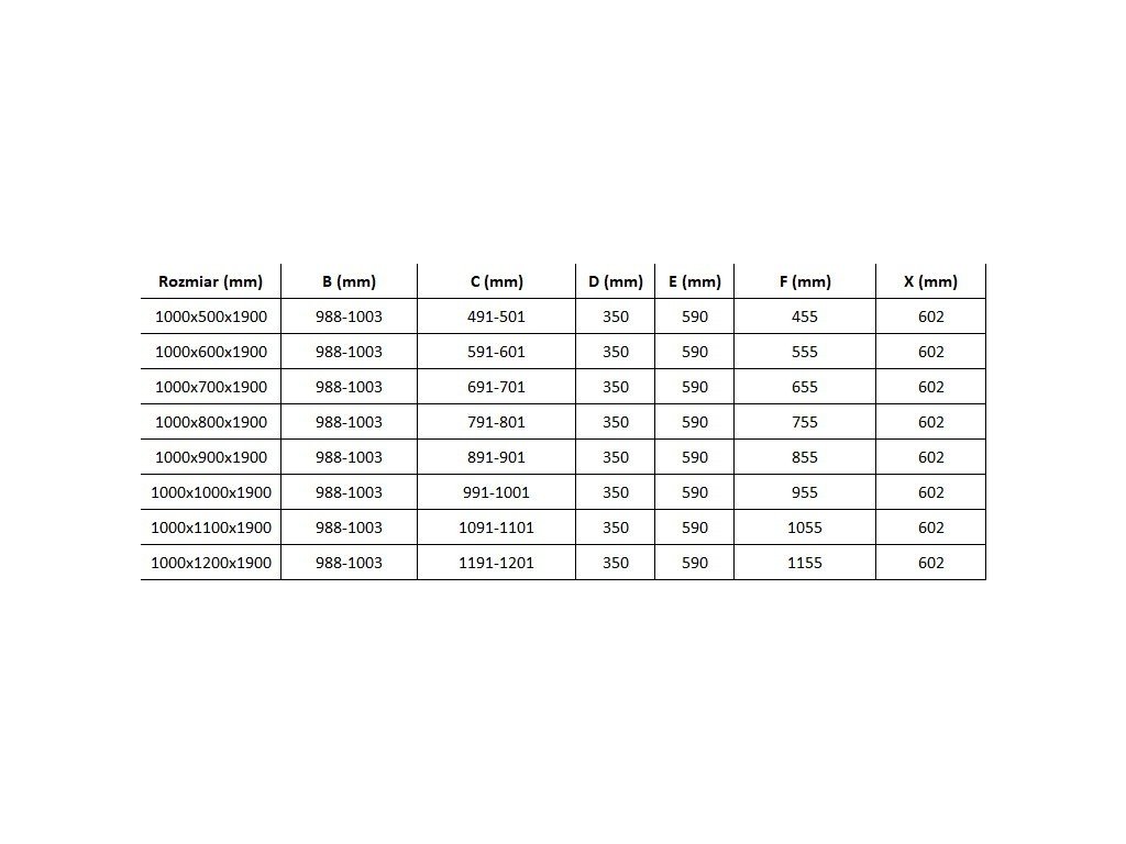 Rozměr: 100x80 cm (dveře 100 cm, stěna 80 cm)