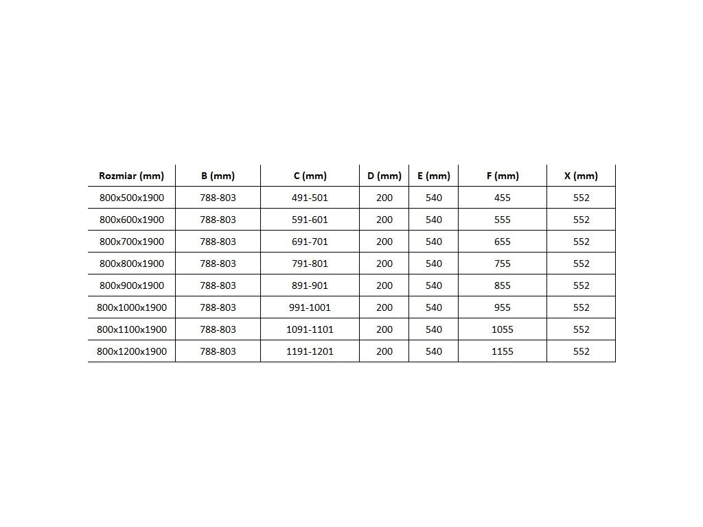 Rozměr: 80x100 cm (dveře 80 cm, stěna 100 cm)