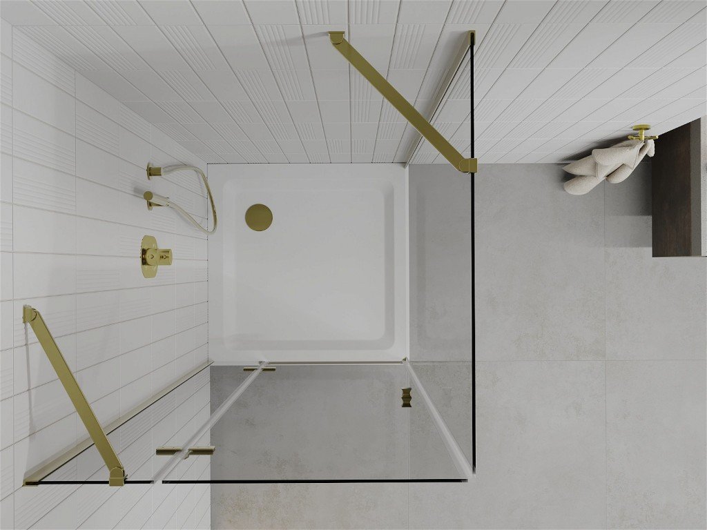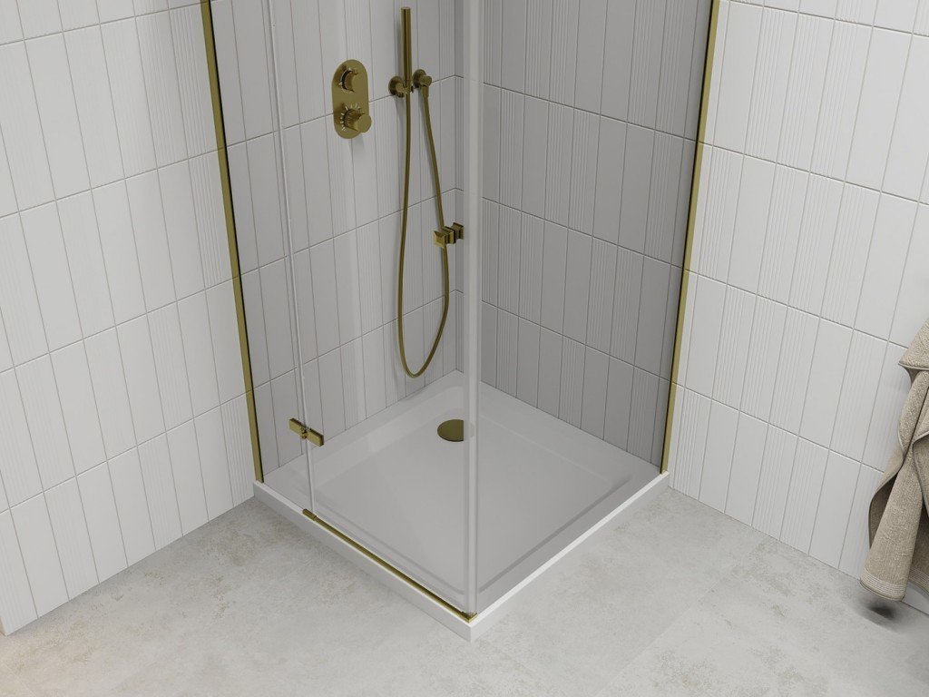 MEXEN/S - Roma sprchový kout 90x90, kyvný, čiré sklot, złatý + vanička 854-090-090-50-00-4010