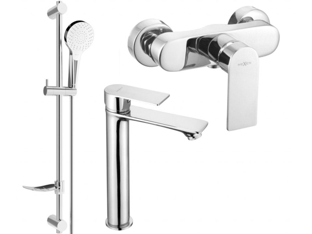 MEXEN/S - Royo DF05 Set umyvadlové a sprchová baterie s příslušenstvím, chrom 72214DF05-00