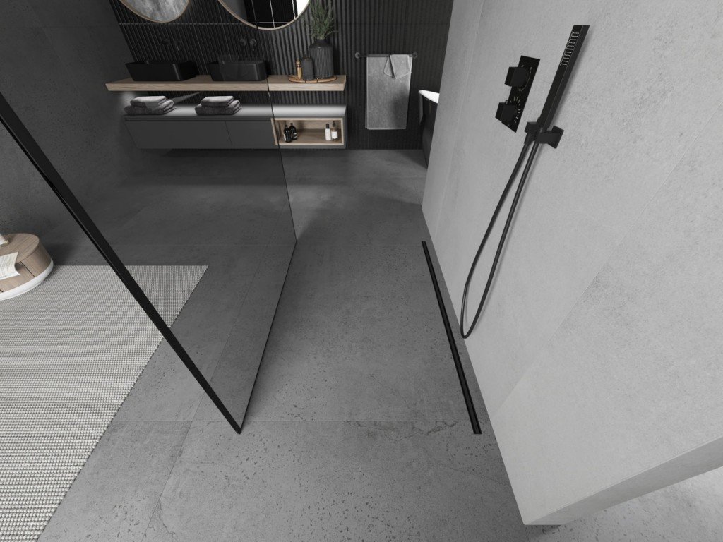MEXEN/S - Sprchová zástěna WALK-IN volněstojící 120 x 200, transparent/černá vzor 8 mm, černá 800-120-002-70-70