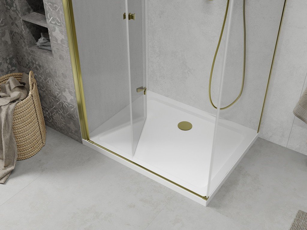 MEXEN/S - Sprchový kout zalamovací Lima 70x90, sklo čiré, zlatý + vanička 856-070-090-50-00-4010