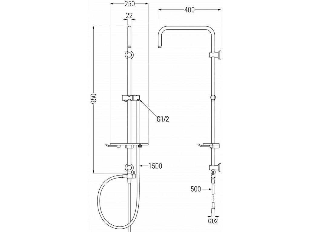 MEXEN/S - Sprchový sloup T bez baterie a bez příslušenství, černý 7939399-70