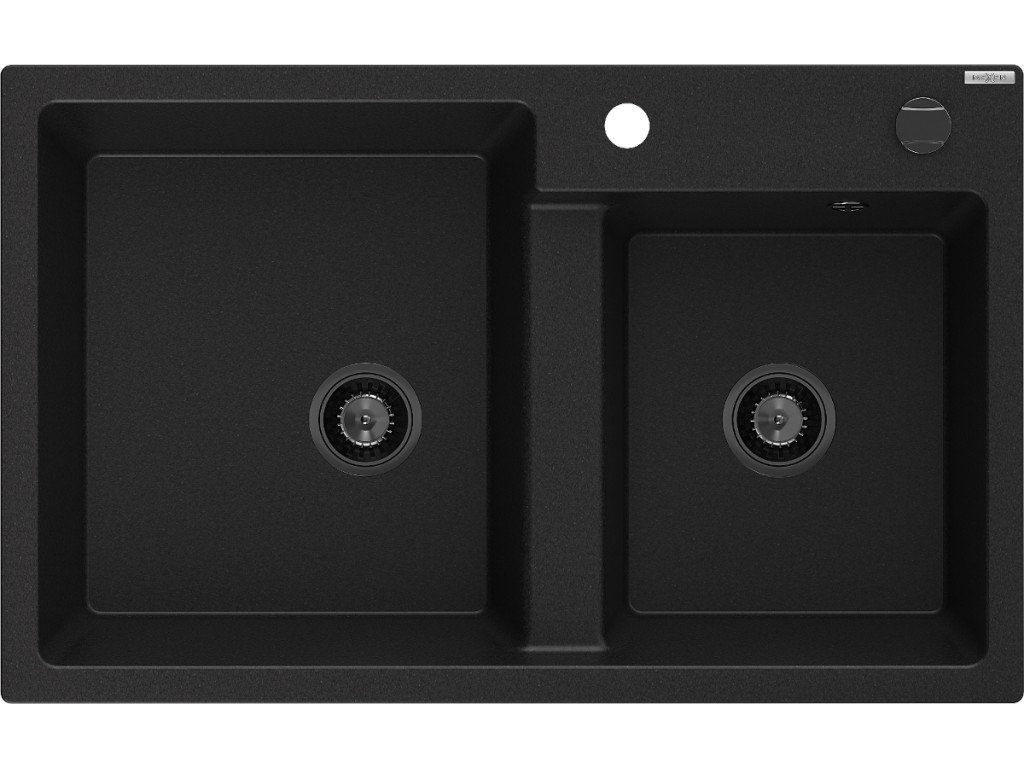 MEXEN/S - Tomas granitový dřez 2-bowl 800 x 500 mm, černá, + černý sifon 6516802000-77-B