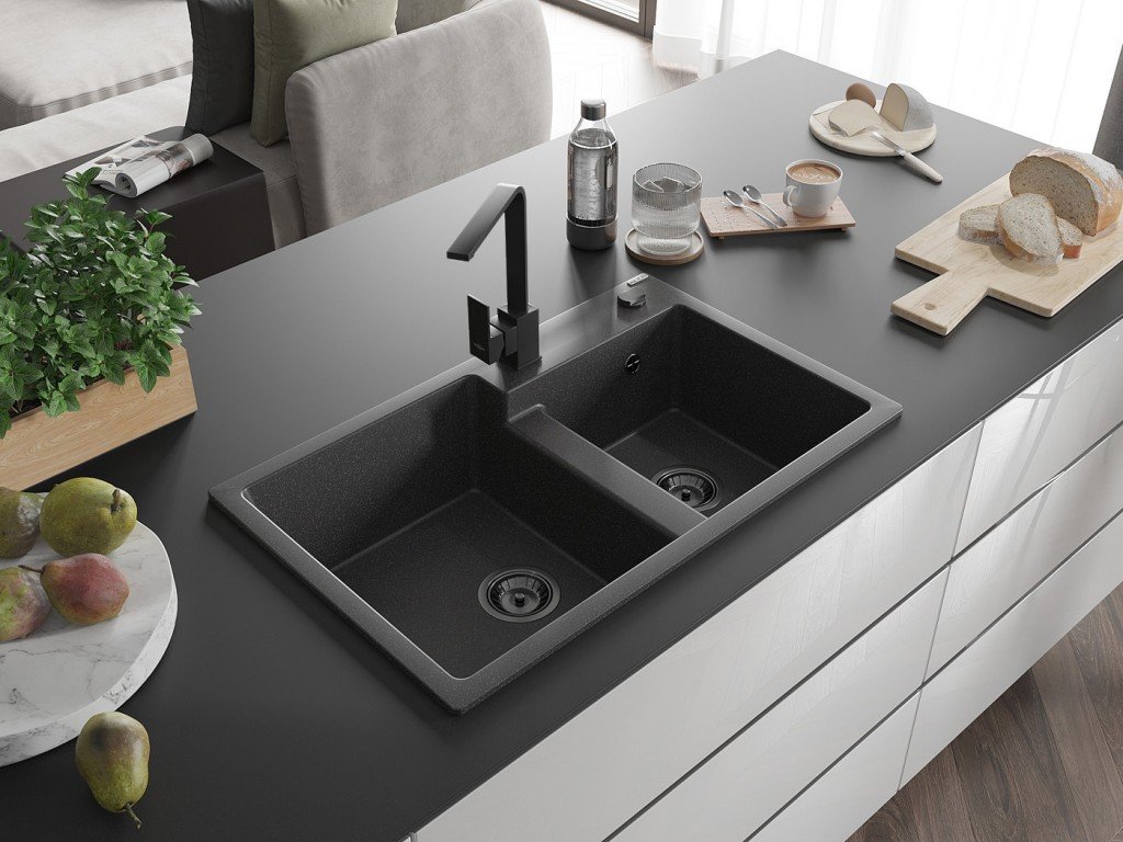 Kuchyňský granitový dřez odolný vůdči poškrábání, teplotním šokům a nárazům. Směs přírodní pryskyřice a hustého granitu.