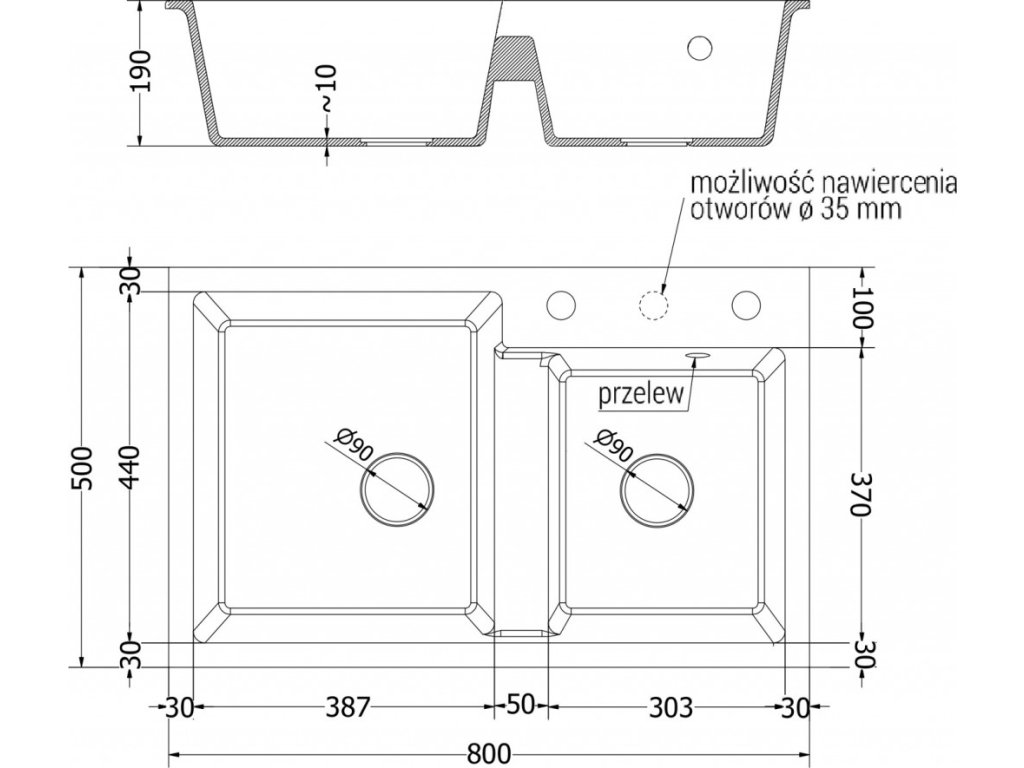 Jeden dodatečný vyfrézovaný otvor pro samoděrování ø35
