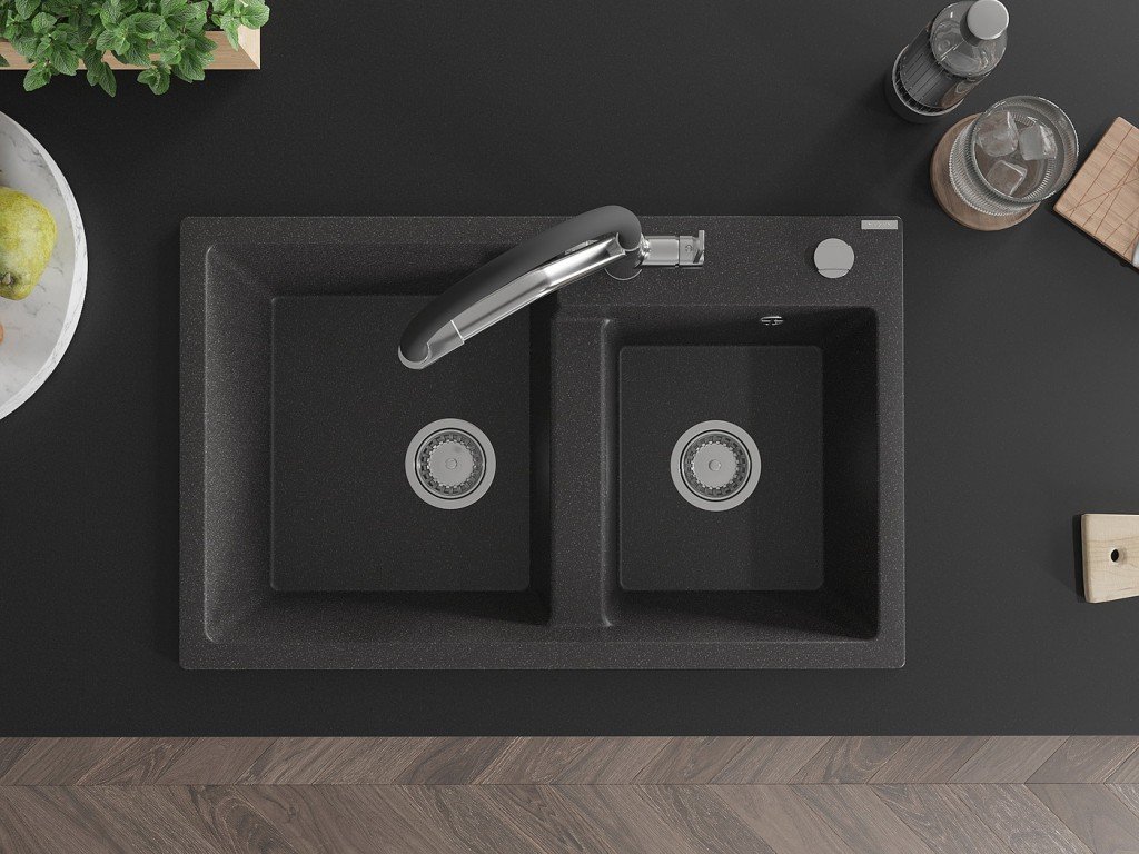 Kuchyňský granitový dřez odolný vůdči poškrábání, teplotním šokům a nárazům. Směs přírodní pryskyřice a hustého granitu.