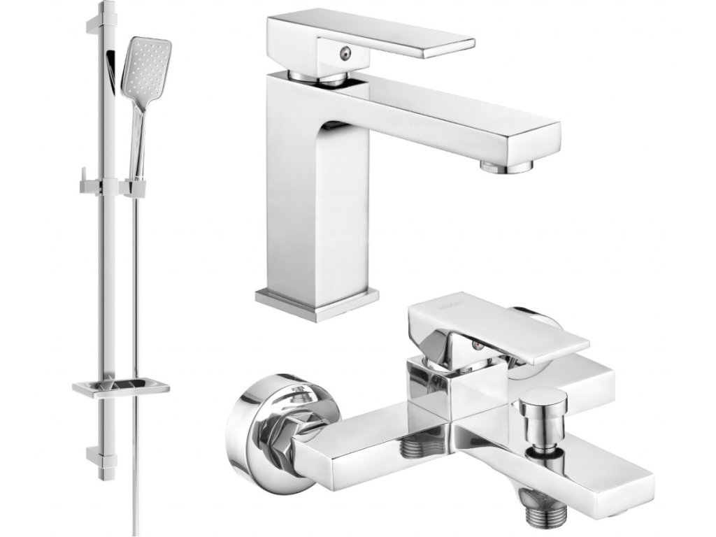 Tříprvková umyvadlová retro baterie ANTEA v barevném provedení chrom-zlato. Balení obsahuje uzavírací výpusť a přívodní hadici.