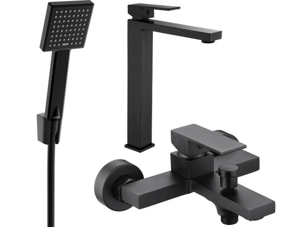 MEXEN/S - Uno R45 Set umyvadlové a vanové baterie s příslušenstvím, černá 71413R45-70