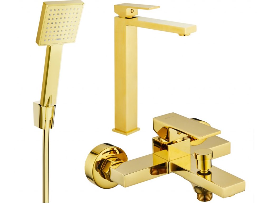 MEXEN/S - Uno R45 Set umyvadlové a vanové baterie s příslušenstvím, zlato 71413R45-50