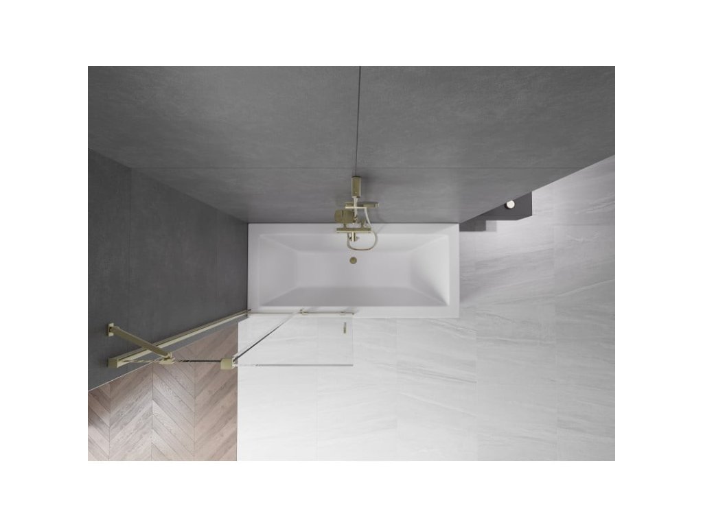 MEXEN/S - Velar Dvoukřídlá posuvná vanová zástěna 90 x 150, transparent, zlatá 896-090-000-01-50