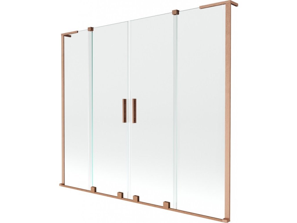 MEXEN/S - Velar L Duo dvoukřídlá posuvná vanová zástěna 200 x 150, transparent, měď kartáčovaná 896-200-003-02-65