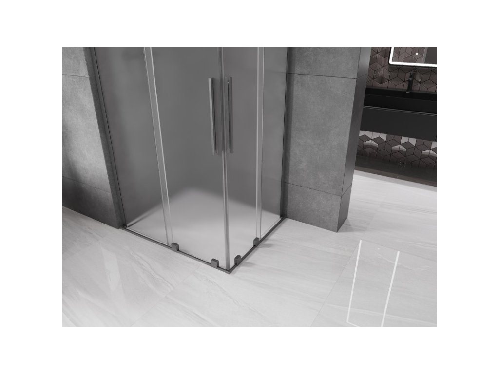MEXEN/S - Velar L Duo sprchový kout, posuvné dveře 100 x 90, dekor, gun gray kartáčovaná 871-100-090-02-33-66