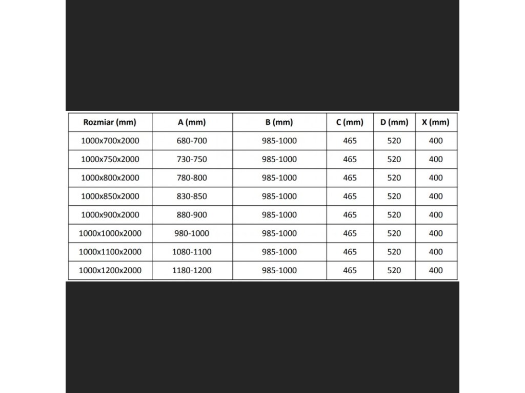Specifikace produktu:Rozměr: 100x110 cm (dveře 100 cm, stěna 110 cm)