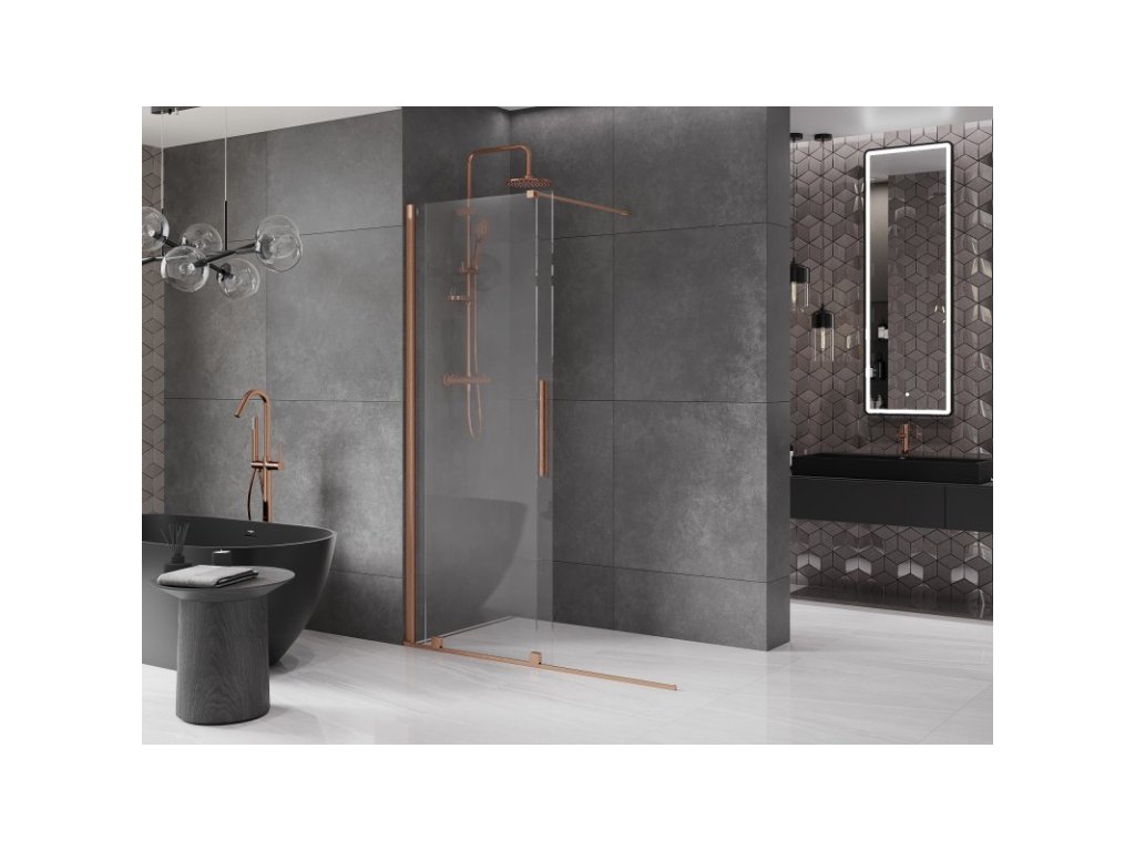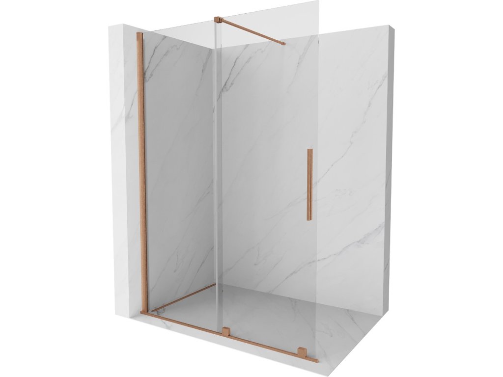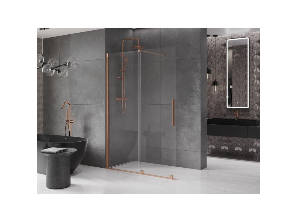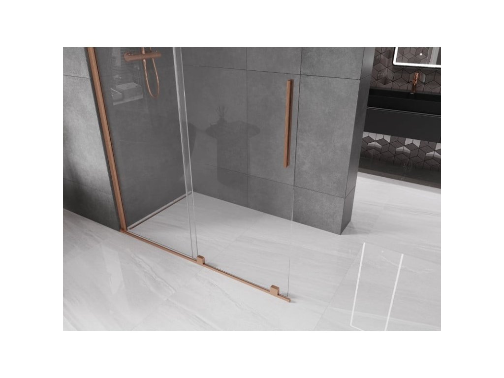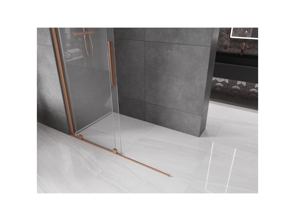 MEXEN/S - Velar posuvné sprchové dveře Walk-in 140, transparent, kartáčovaná měď 871-140-000-03-65