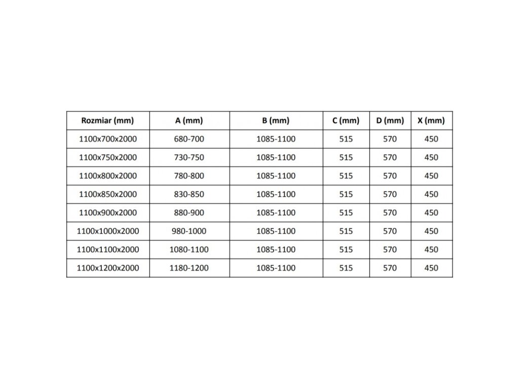 Specifikace produktu:Rozměr: 110x70 cm (dveře 110 cm, stěna 70 cm)