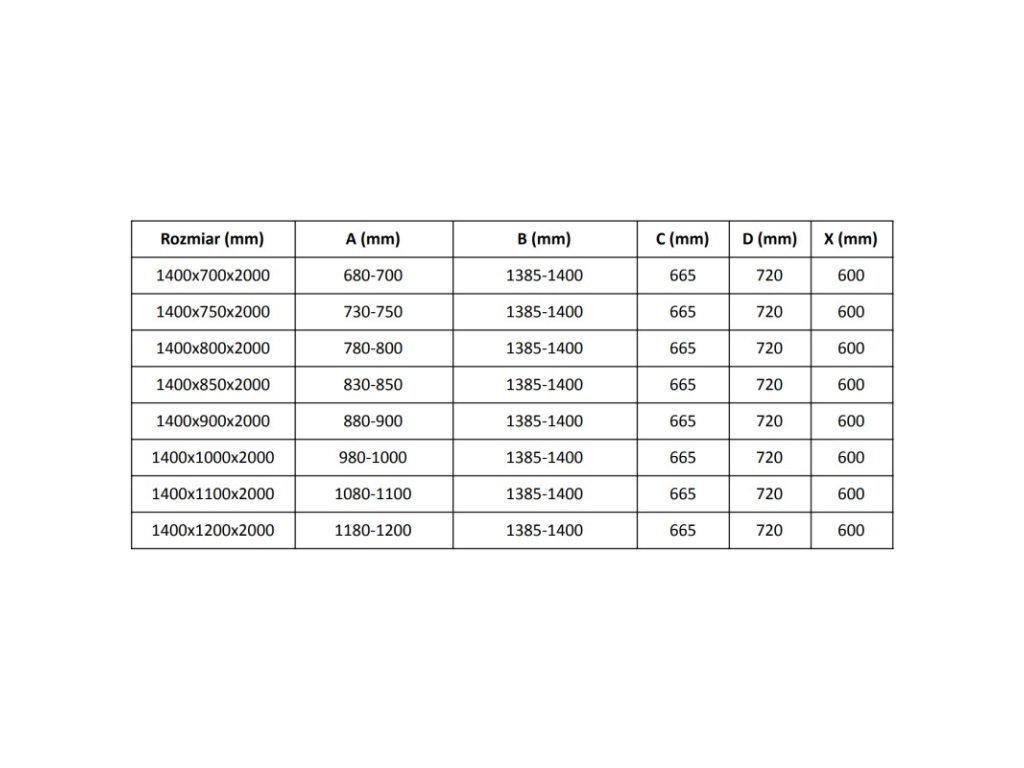 Specifikace produktu:Rozměr: 140x90 cm (dveře 140 cm, stěna 90 cm)