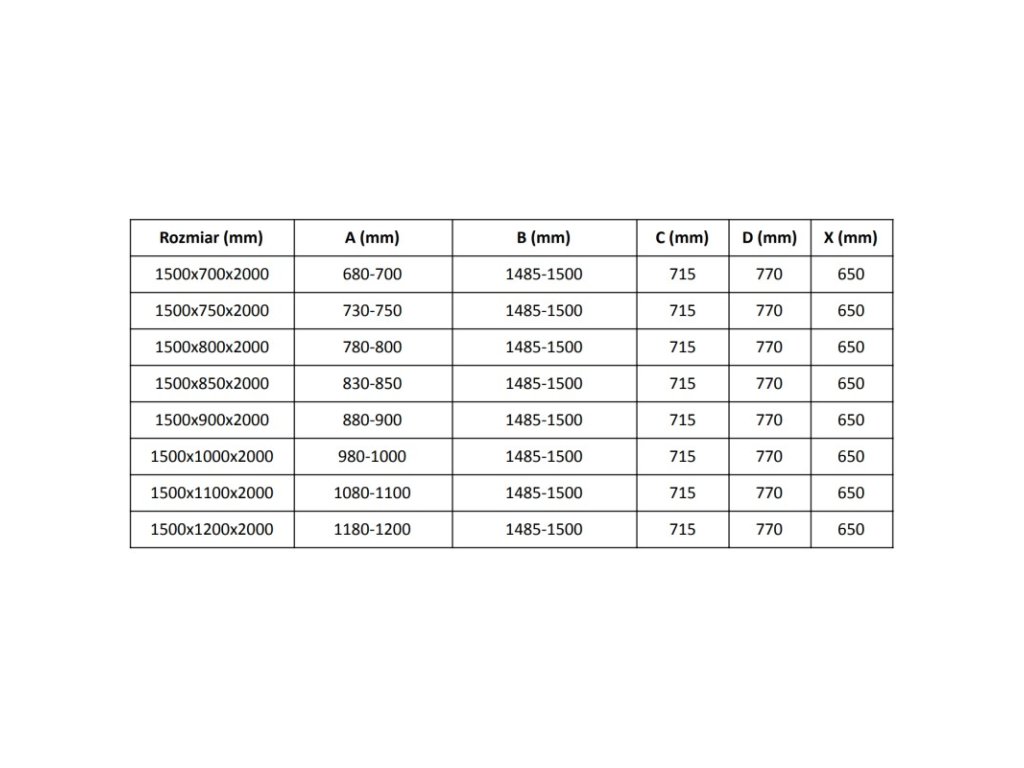 Specifikace produktu:Rozměr: 150x75 cm (dveře 150 cm, stěna 75 cm)