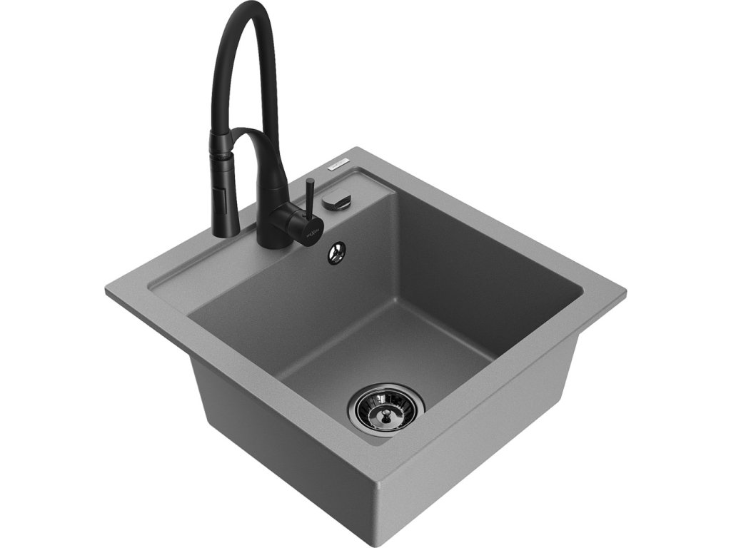 MEXEN/S - Vito granitový dřez 1-miska včetně baterie Aster, šedá 6503-71-73450-70-B