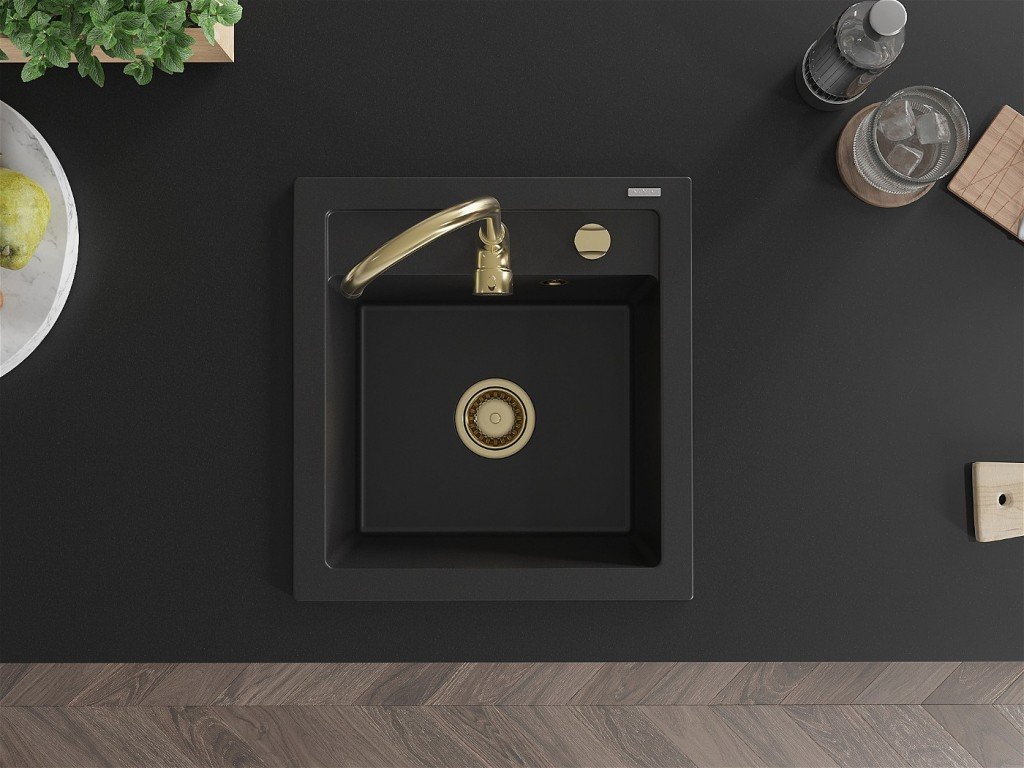 MEXEN/S - Vito granitový dřez 1-miska včetně baterie Telma, černá 6503-77-670200-50