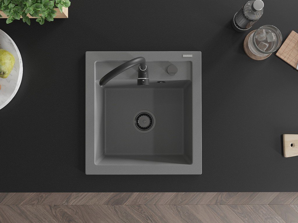 MEXEN/S - Vito Vito granitový dřez 1-miska 520x490 mm, šedá,+ černý sifon 6503521000-71-B