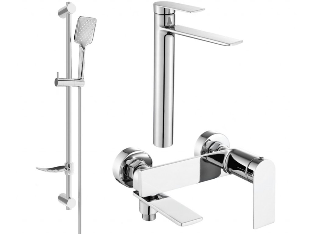 Kombinace válcového těla s hranatou hubicí u umyvadlové baterie
