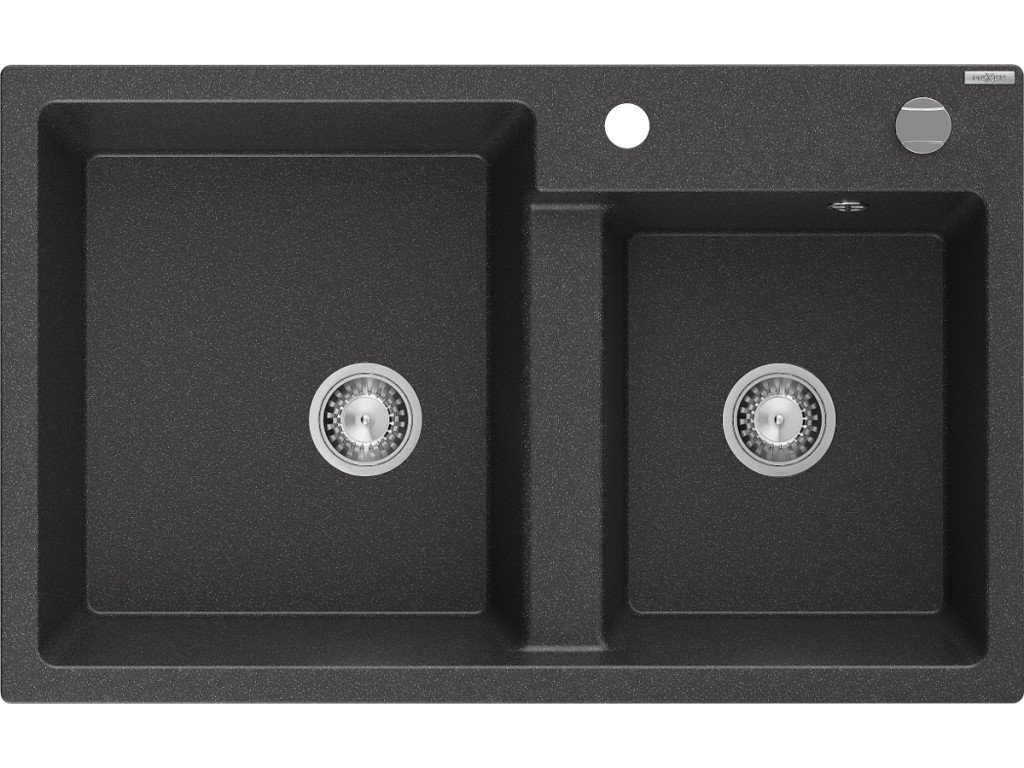 MEXEN - Tomas granitový dřez 2-bowl 800x500 mm,černá kropenatý, sifon chrom 6516802000-76