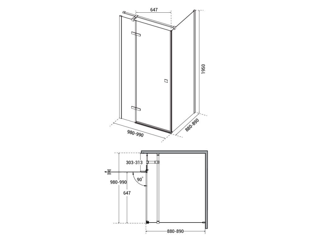 - 100 × 90 × 195 cm (montážní rozměr 98 - 99 × 88 - 89 cm)