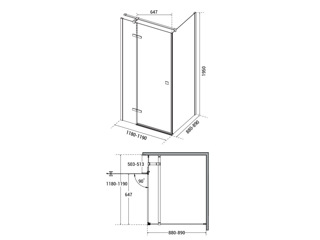 - 120 × 90 × 195 cm (montážní rozměr 118 - 119 × 88 - 89 cm)