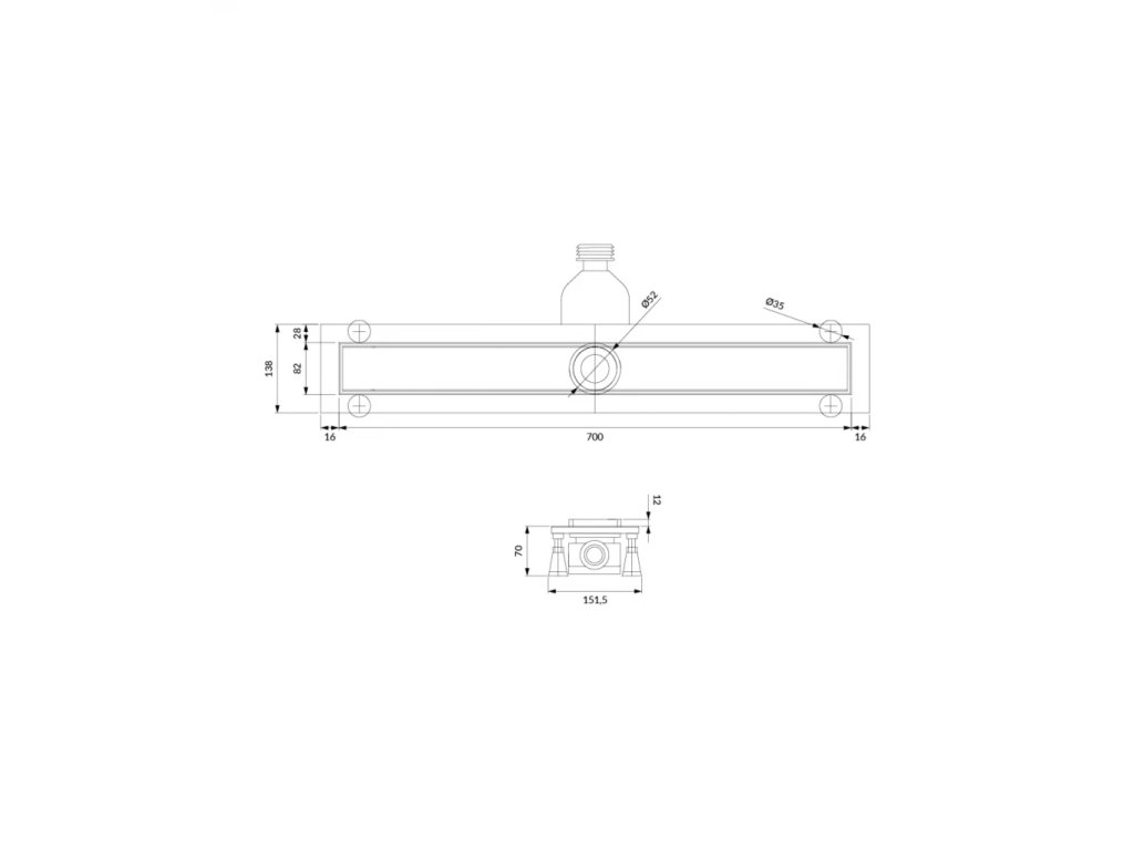 - odtokový žlab a kryt z eloxovaného hliníku