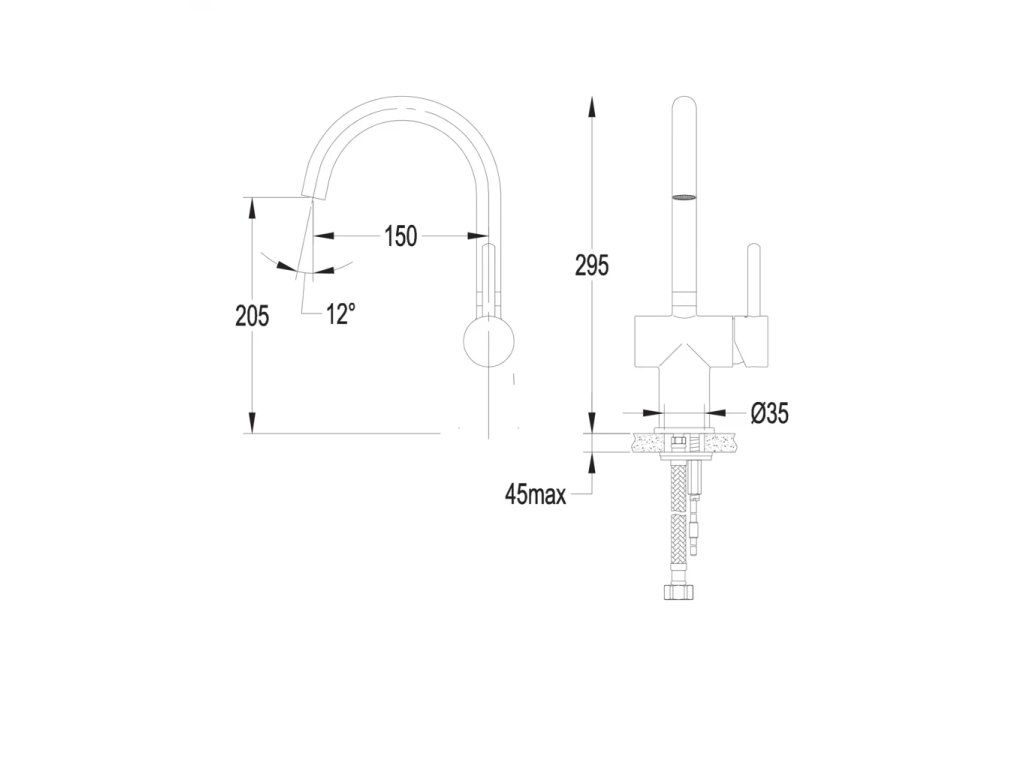 - dosah výtoku: 15 cm