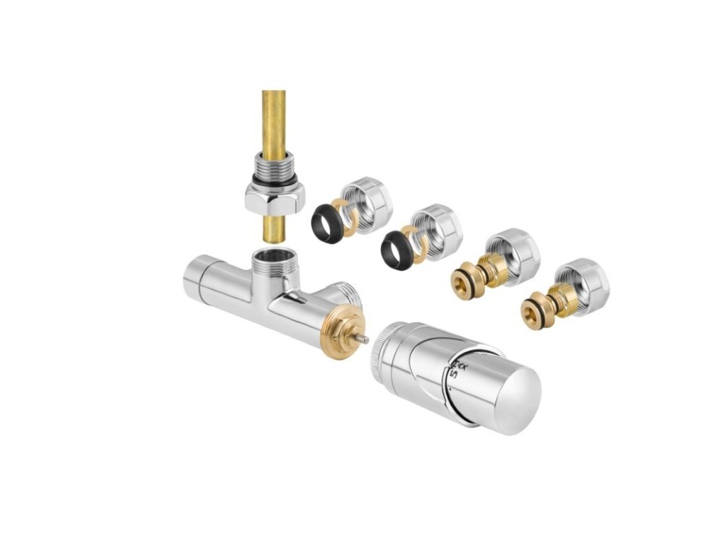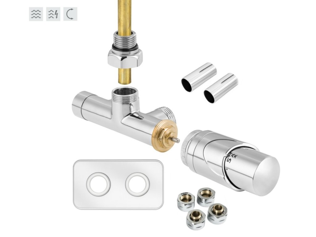 Jednobodová oboustranná (levá i pravá) termostatická sada ONE vč. krycí rozety a 2 krycích trubiček (mosaz) je určena pro připojení radiátorů na rozvody TUV s vývodem ze zdi s...