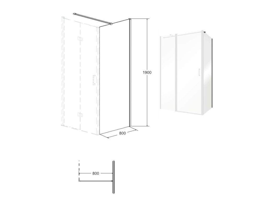 - Rozměr pevné stěny 80 x 190 cm (výška): montážní rozměr 78,5 - 80 × 190 cm