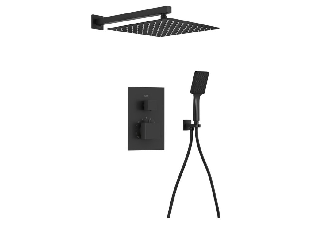 Podomítkový sprchový set s termostatickou baterií, box, 2 výstupy, černá mat + slevový kód, + prodloužená záruka