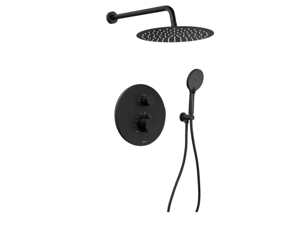 Podomítkový sprchový set s termostatickou baterií, box, 2 výstupy, černá mat