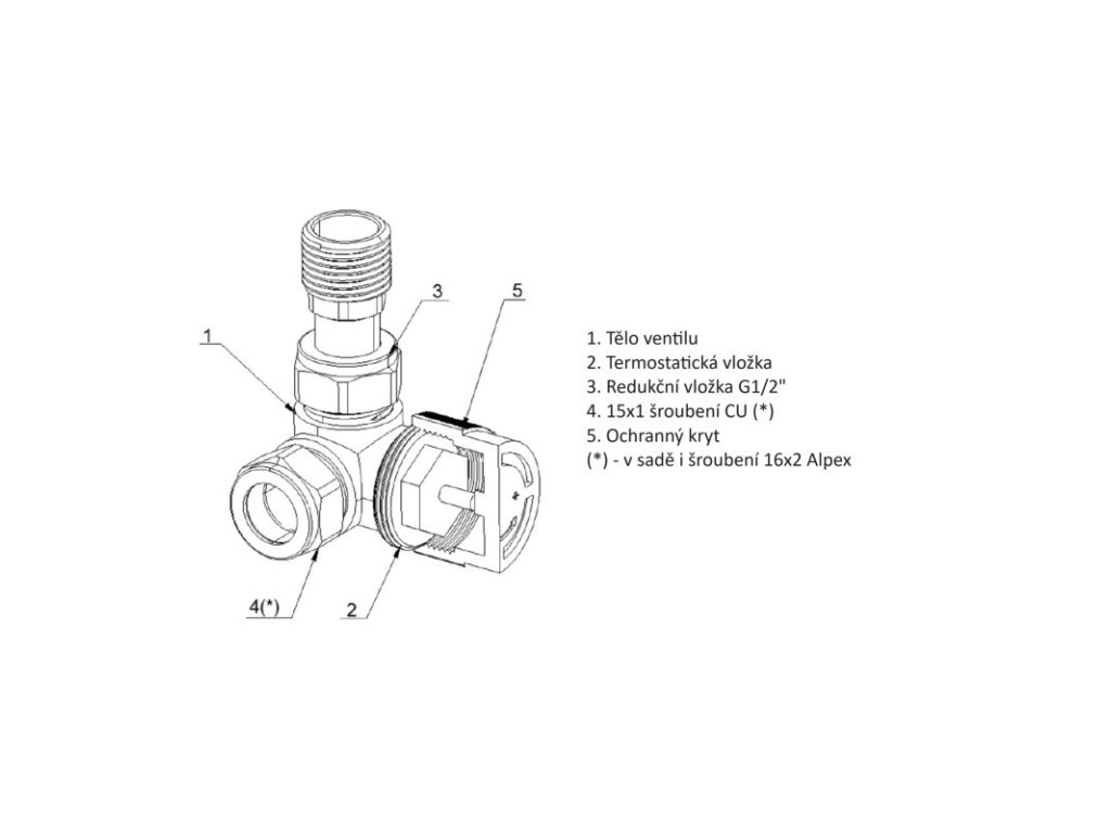 - 1x ventil s termostatickou hlavicí